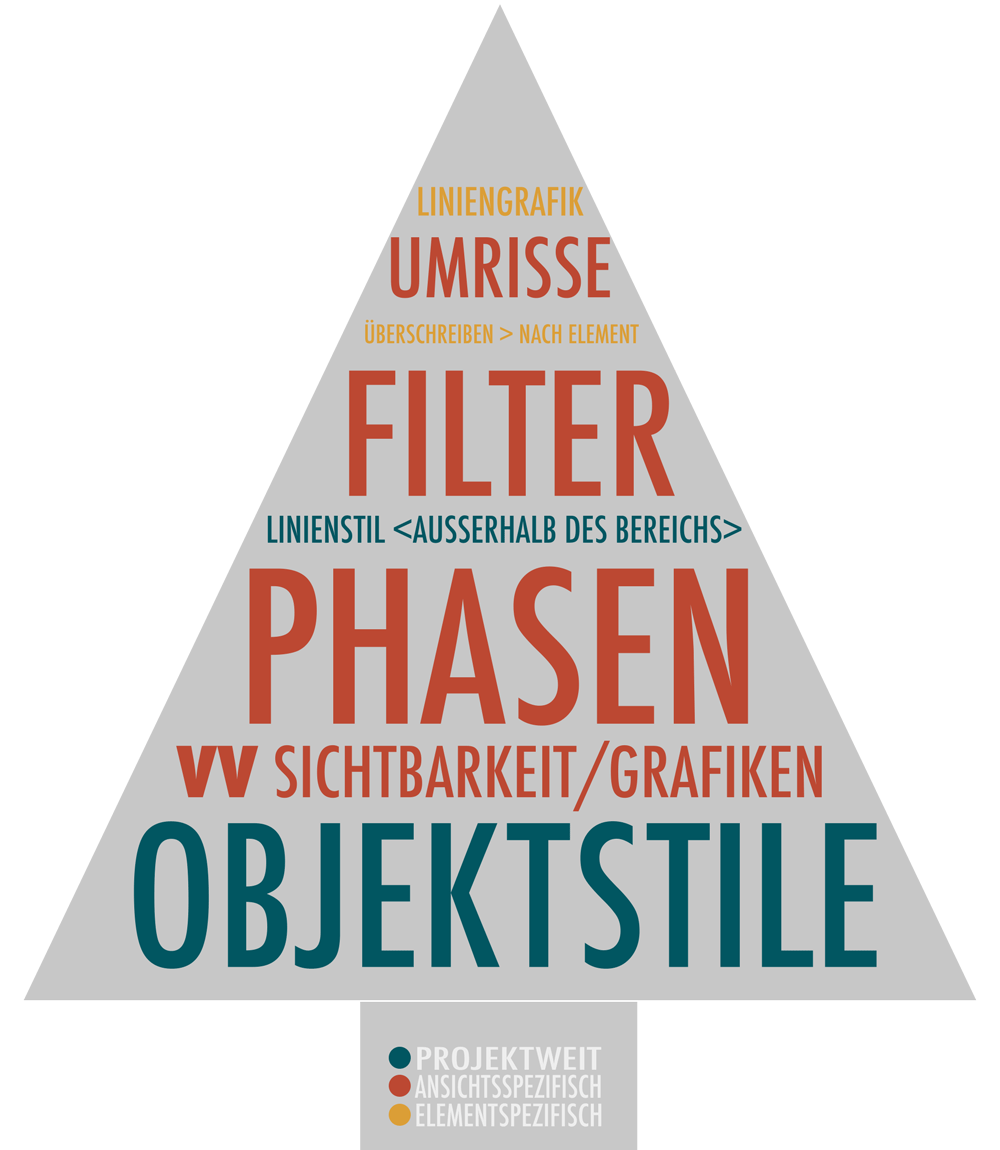 The pyramid represents the hierarchy of all settings available in Revit for displaying elements - higher settings options always overwrite all those below them. Or have you never sat in front of a view and wondered (and maybe cursed a little!) why something doesn't look the way you want it to? 😉